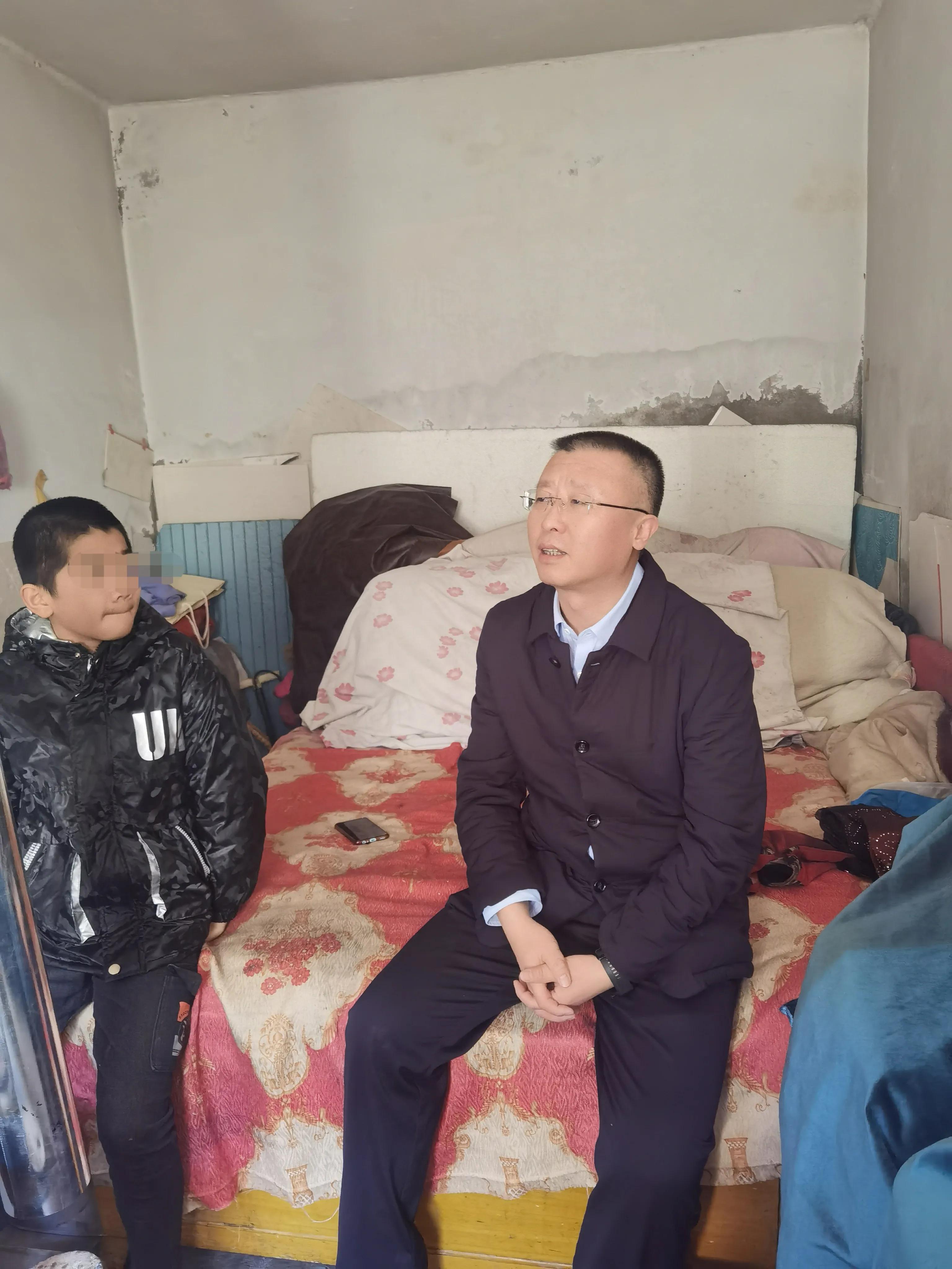 宣化区政府一级主任科员陈佳凌,通过小小烛光公益促进会得知,新华路上小学六年的郝健楠同学由于家庭困难,每日放学回家路上捡瓶子贴补家用,母亲一人挑起家中重担,一边照顾儿子郝健楠,夜晚还要兼职在夜市打工养家糊口给丈夫看病,陈主任在志愿者带领下来到了郝健楠家中与学生家长亲切交谈,了解学生本人的学习、生活、家庭收入等情况。一边鼓励郝健楠父母要积极面对生活,一边鼓励孩子好好学习,用知识改变命运。会想尽一切办法为他们排忧解难。
