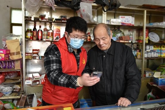 图为志愿者在为农村地区的吴军辉老人提供网上办证指导。姚斐摄